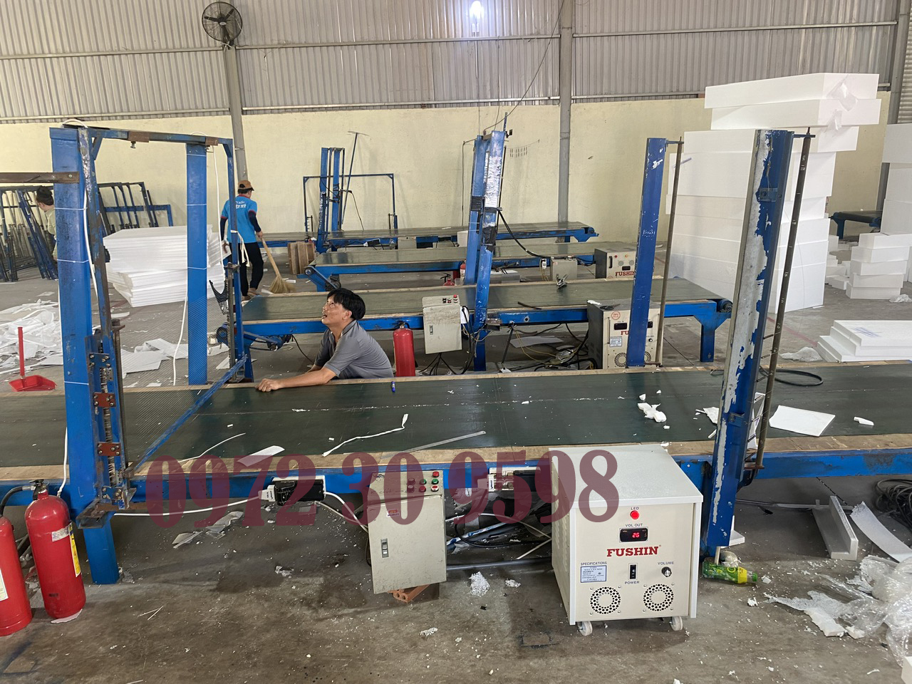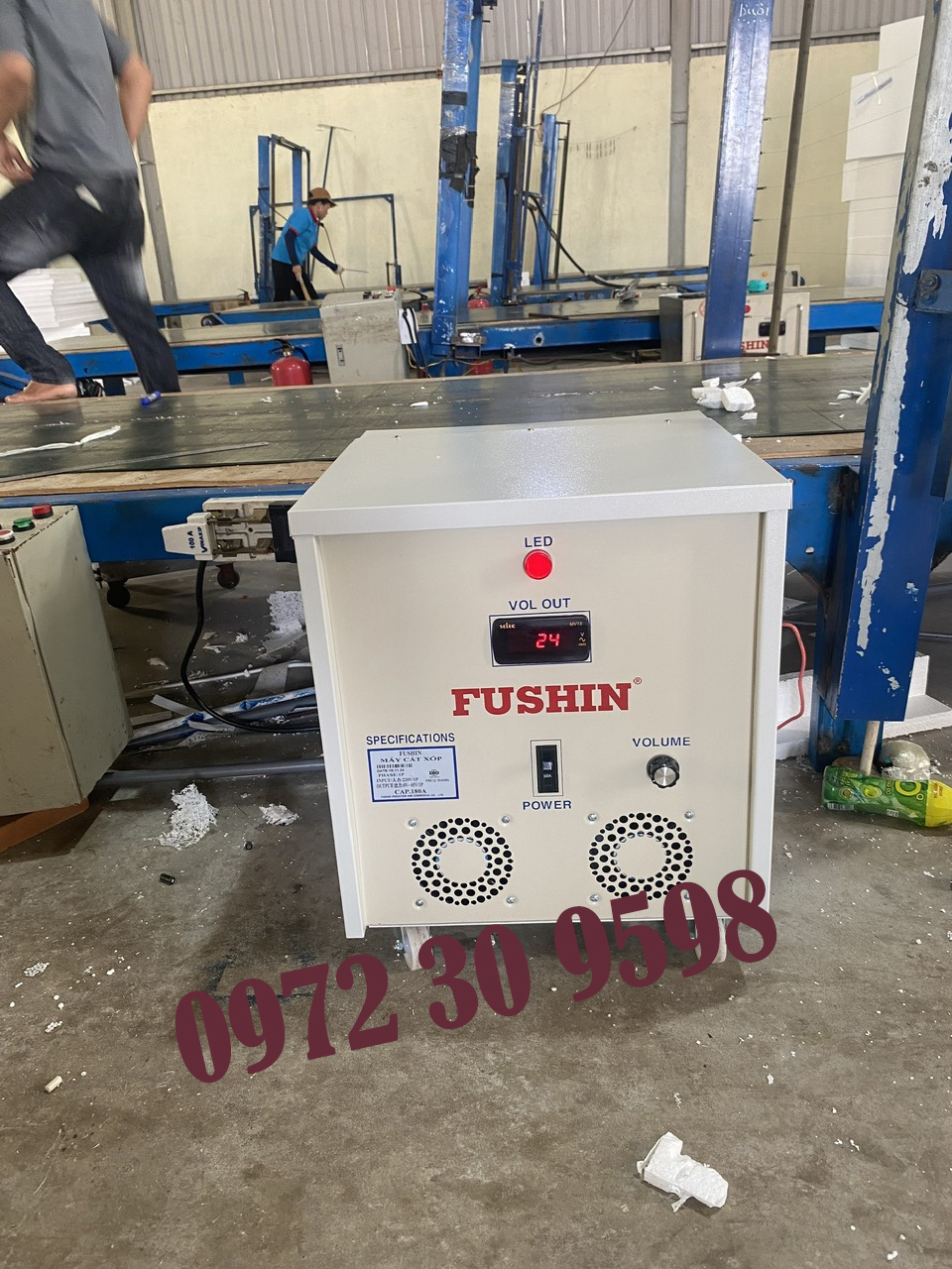 - Máy cắt xốp loại này thường được dùng để cắt xốp EPS, XPS, mút… bằng dây cắt nóng. Bộ phận chính là máy biến áp, có nhiệm vụ cấp dòng điện thích hợp để làm nóng dây.