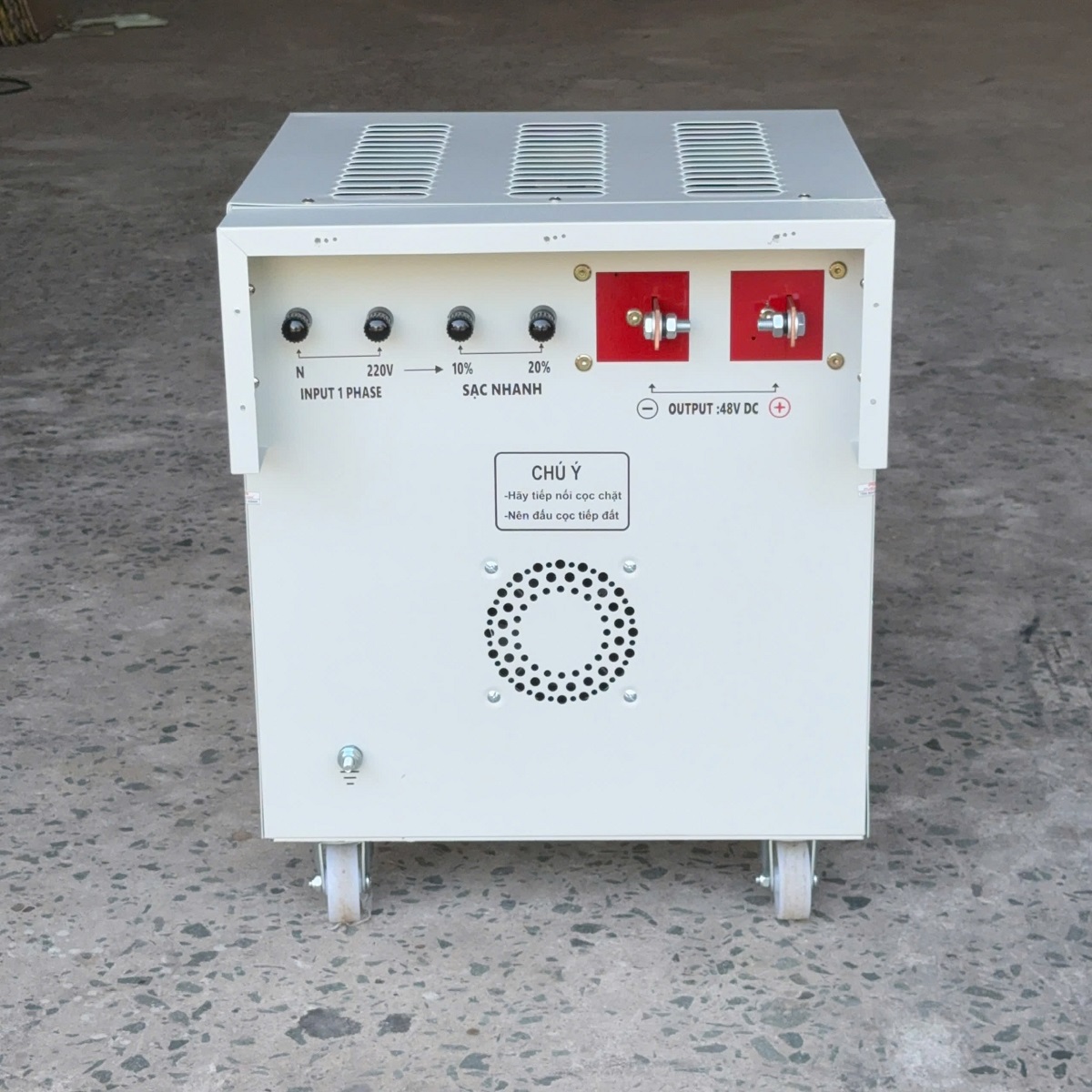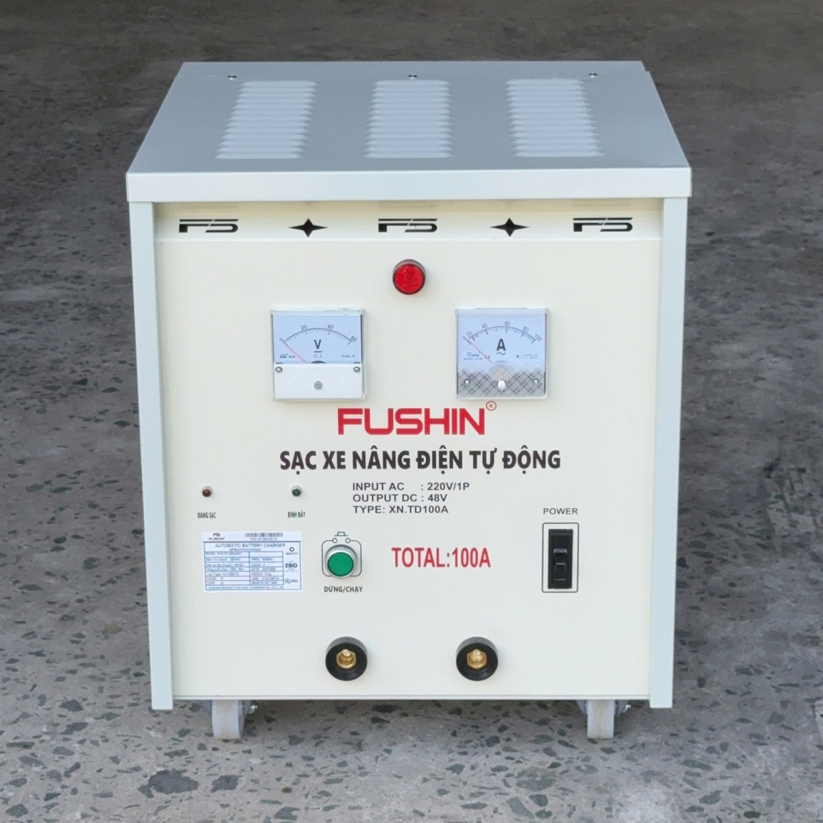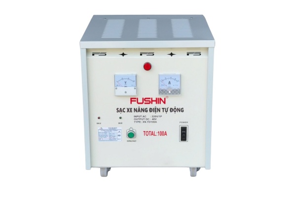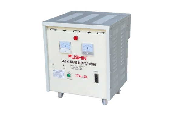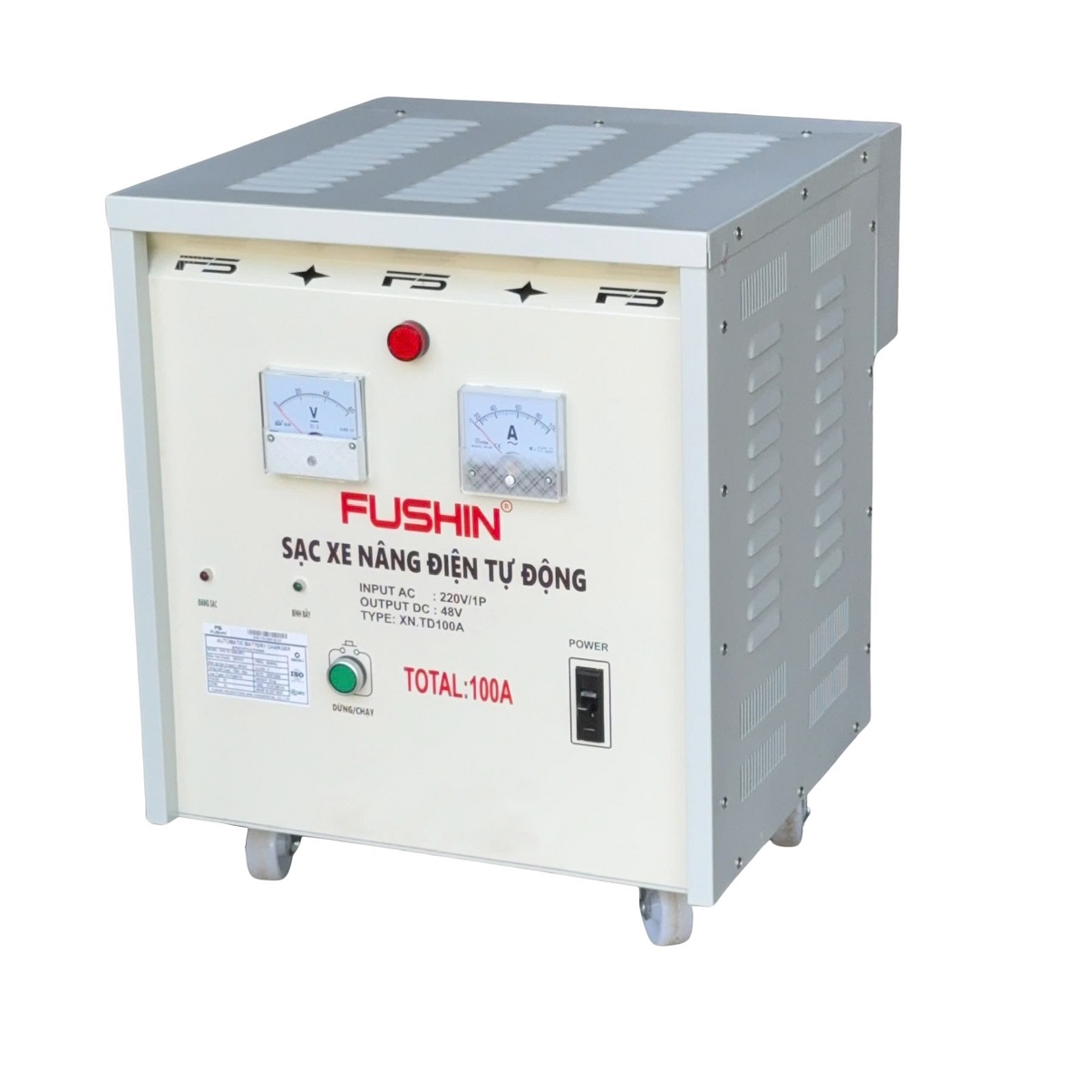 - Máy sạc xe nâng điện tự động SXN.TD-100A 48VDC là thiết bị có thể thay thế cho bộ sạc chính hãng theo xe nâng Nhật bãi khi không có điện áp 3 pha 380V.