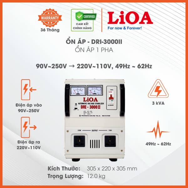 Ổn áp hoạt động dựa trên nguyên lý biến áp tự động, có khả năng điều chỉnh điện áp đầu ra trong phạm vi an toàn, giúp bảo vệ động cơ và mạch điện khỏi hư hỏng.